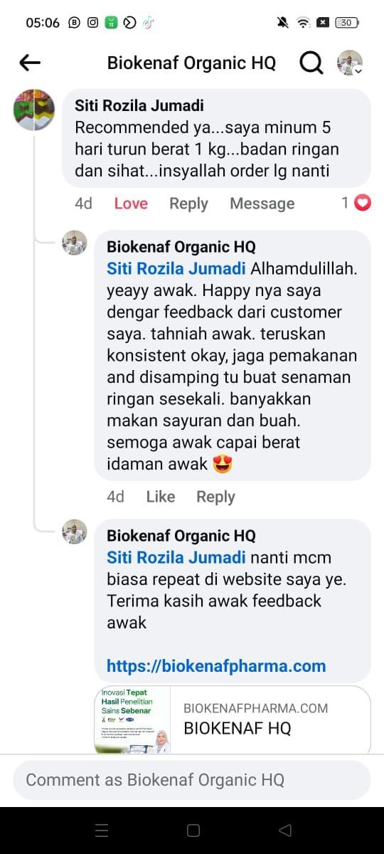Paling penting, BIOKENAF® dah terbukti berkesan melalui kajian klinikal yang terperinci, selamat untuk diamalkan.
